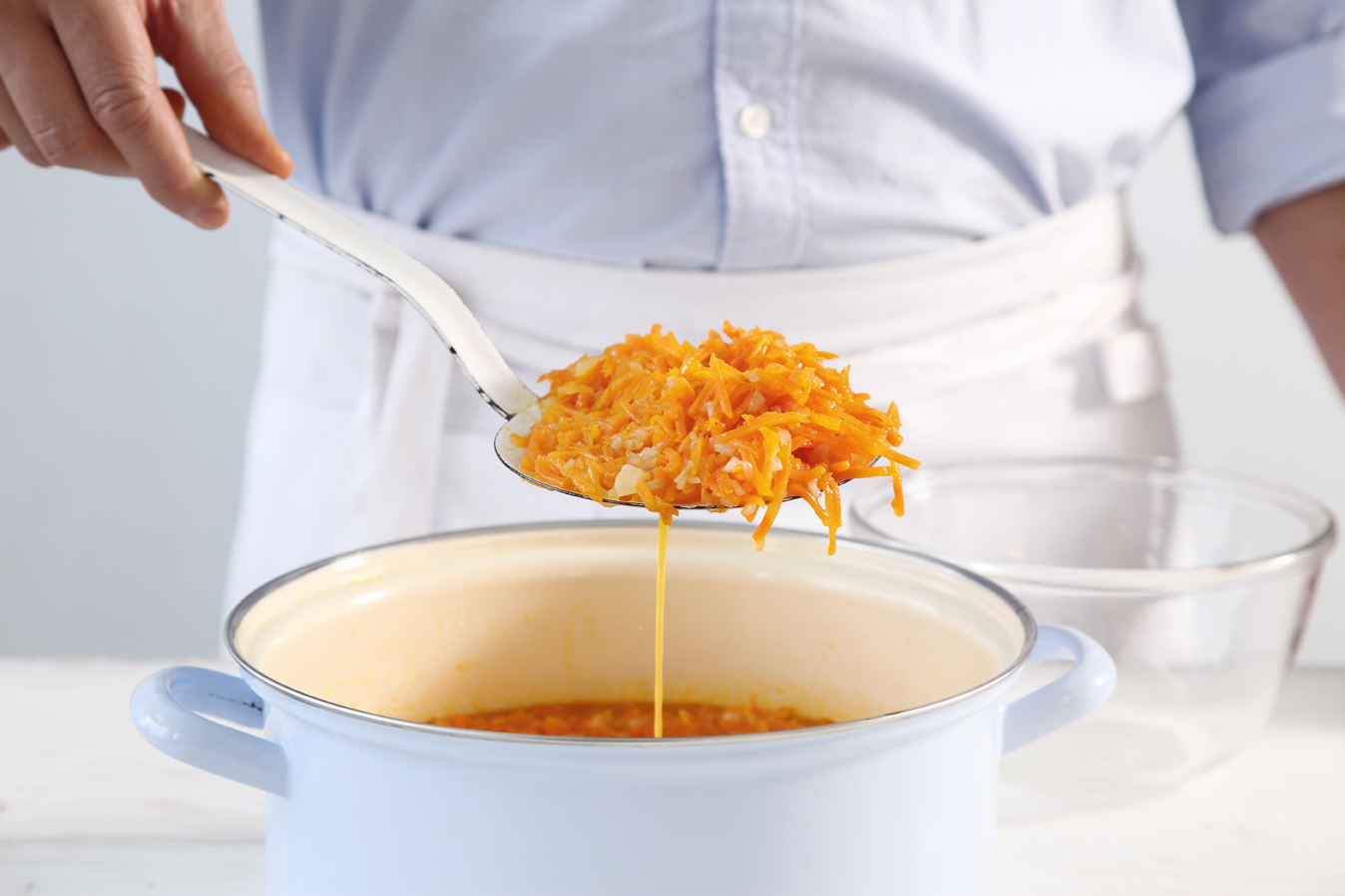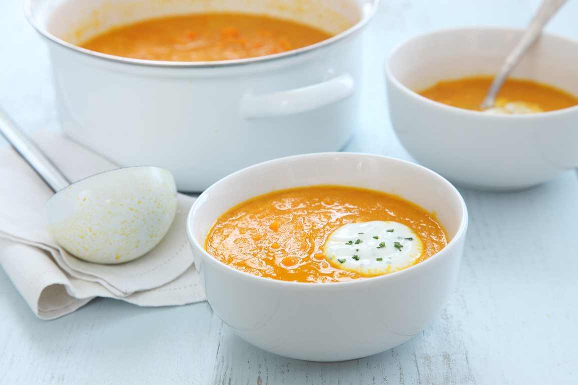 מרק גזר בניחוח ג'ינג'ר, בעידון יוגורט עם דבש