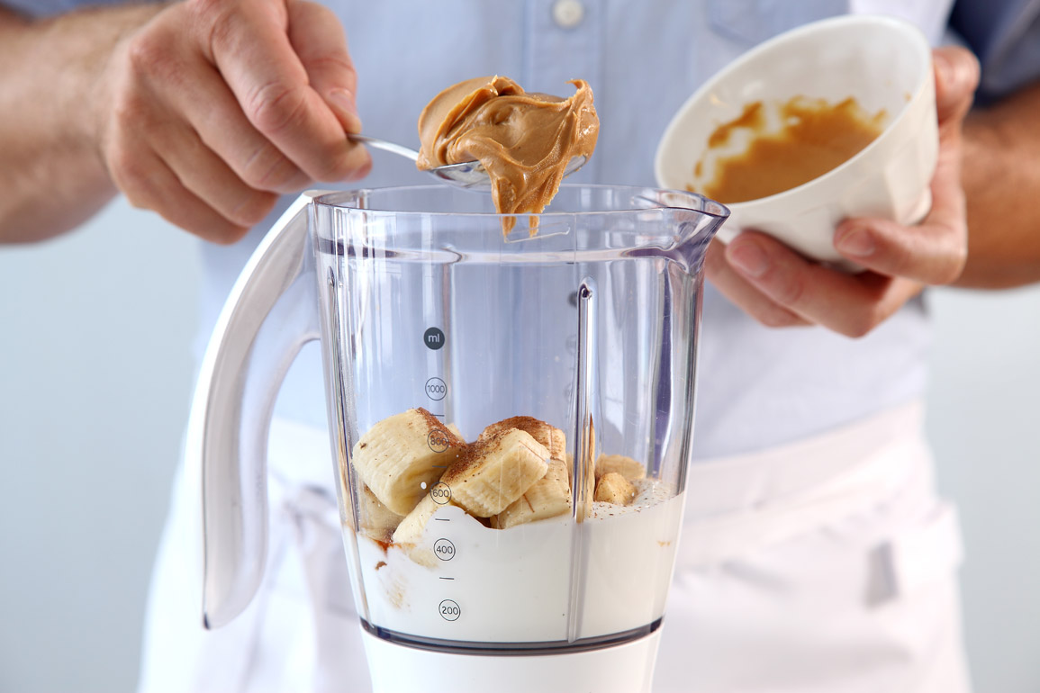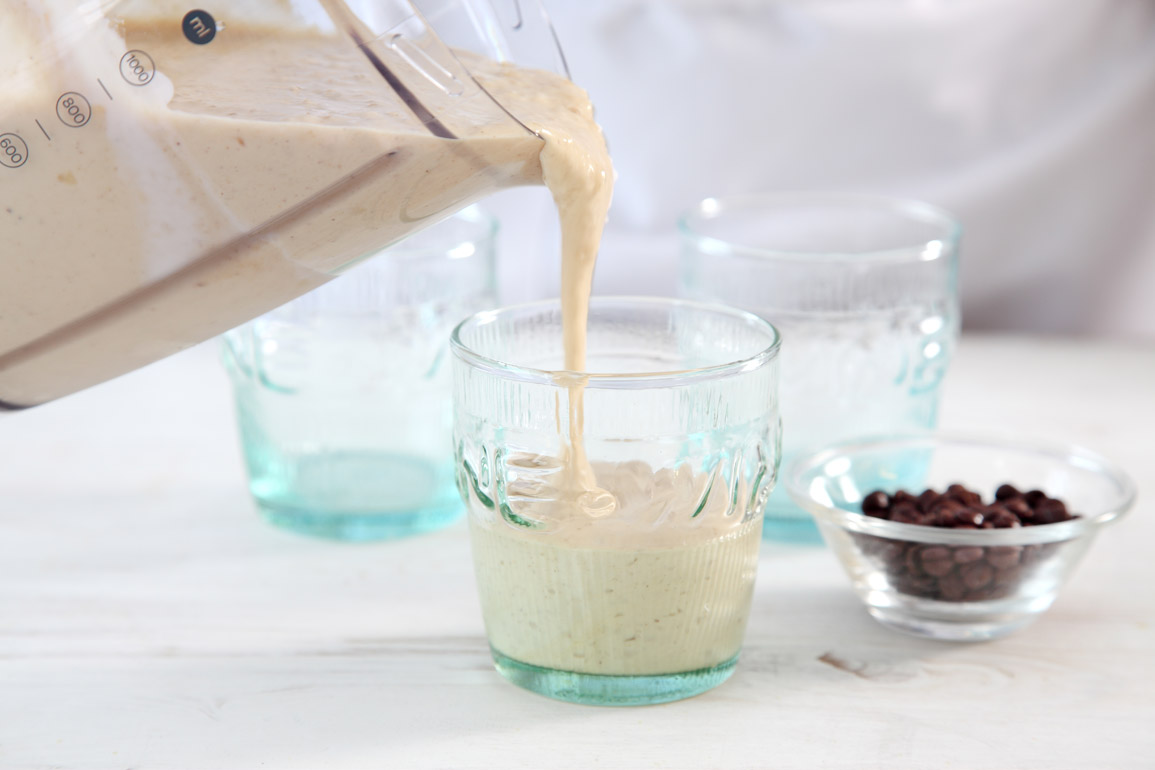 משקה יוגורט קיצי עם בננה, חמאת בוטנים ושוקולד ציפס